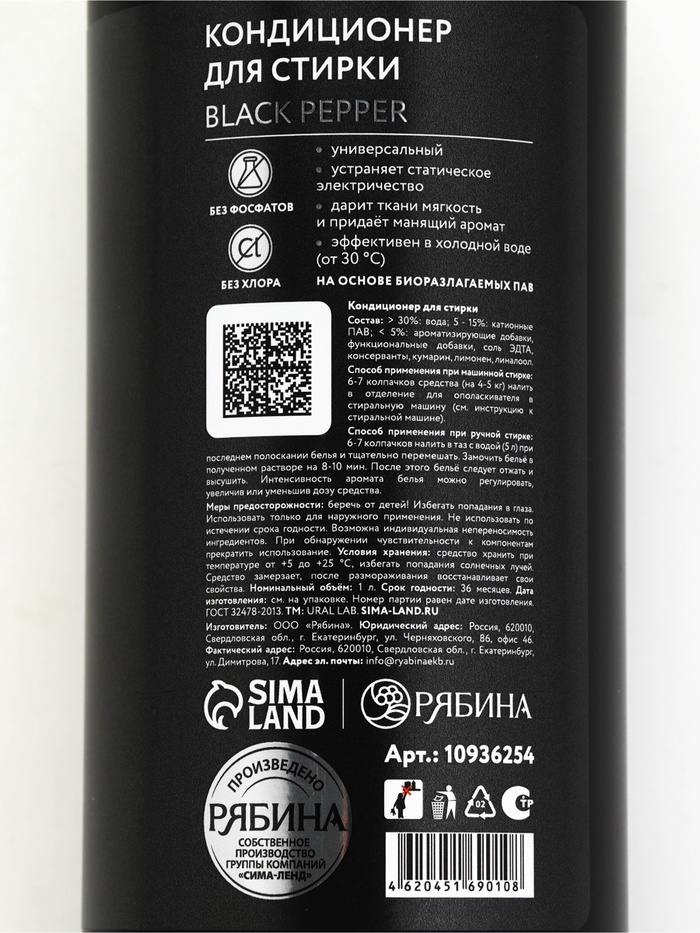 Кондиционер для белья парфюмированный Black pepper, 1000 мл, ULAB — Характеристики
