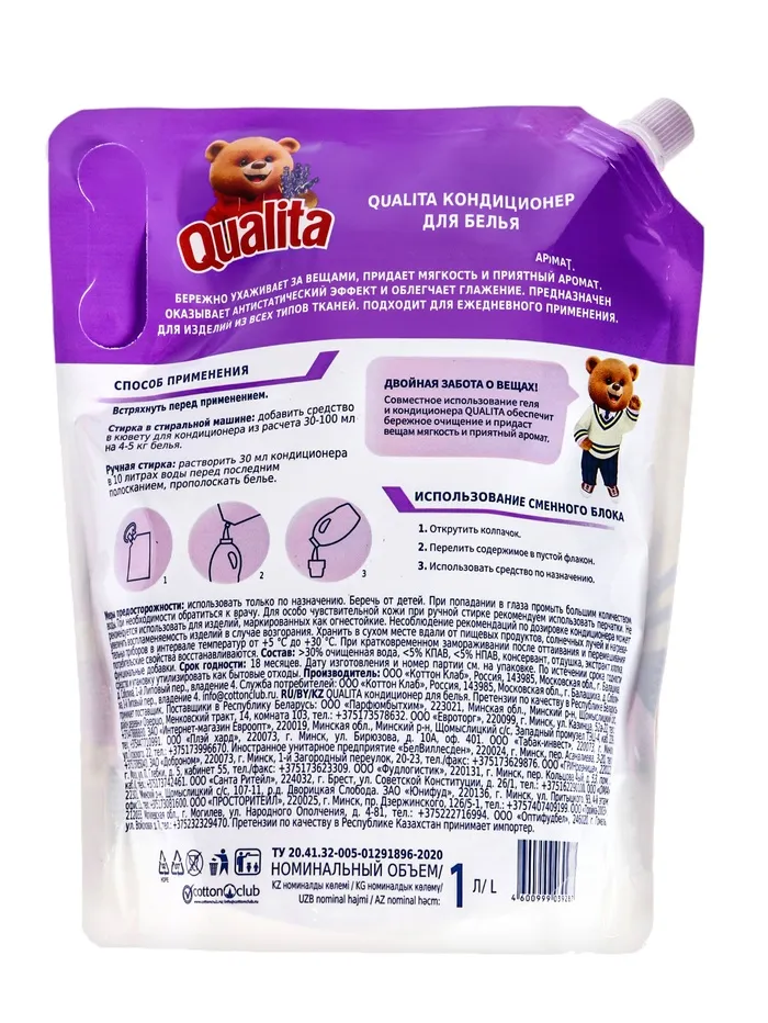 Кондиционер для белья Qualita Lavander," Горная лаванда", 1 л — Характеристики