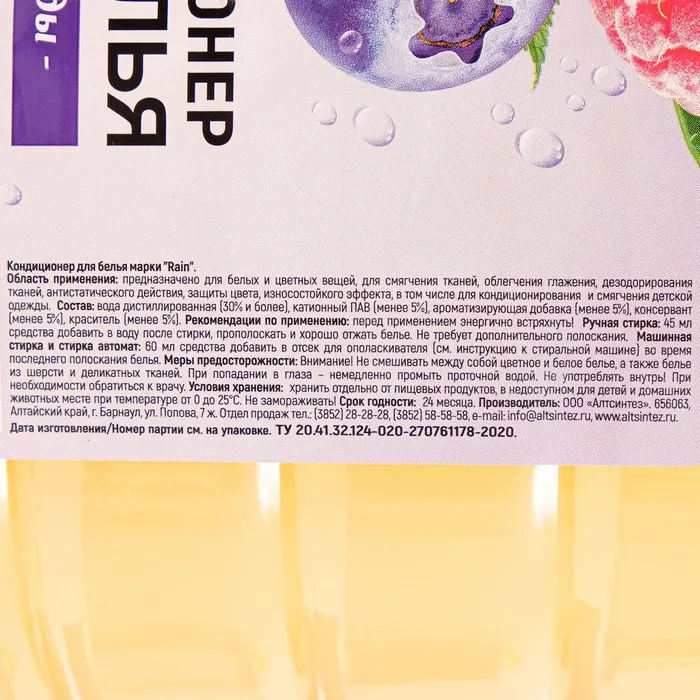 Способ применения: ручная стирка 45 мл средства добавить в воду после стирки, прополоскать и хорошо отжать белье. Для машинной стирки 60 мл средства добавить в отсек для ополаскивателя.