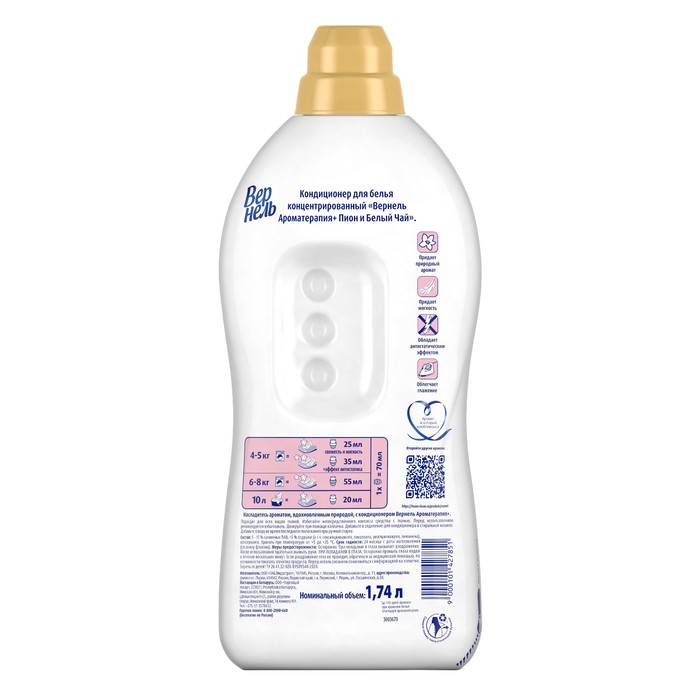 Кондиционер для белья Vernel «Пион и белый чай», 1.74 л — Характеристики