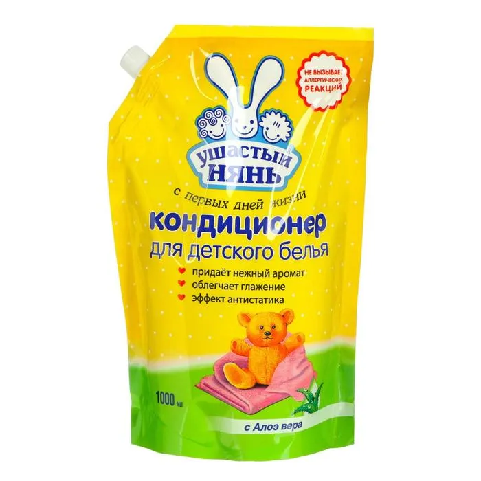 Кондиционер подходит для стирки детского белья, в том числе новорожденных. Придает детскому белью особенную мягкость, облегчает глажение, обладает антистатическим эффектом, придаёт белью приятный нежный аромат, уменьшает количество складок после стирки, предохраняет волокна ткани от изнашивания, улучшает гигроскопичность ткани (впитываемость влаги). Содержит экстракт Алоэ вера, который известен своими смягчающими, увлажняющими и успокаивающими кожу свойствами. Удобно дозируется с помощью колпачка-мерника. Благодаря двойным стенкам колпачка, после дозировки кондиционер стекает внутрь флакона, оставляя флакон чистым и сухим. Дерматологически протестирован. Не содержит красителей. Не вызывает аллергических реакций.