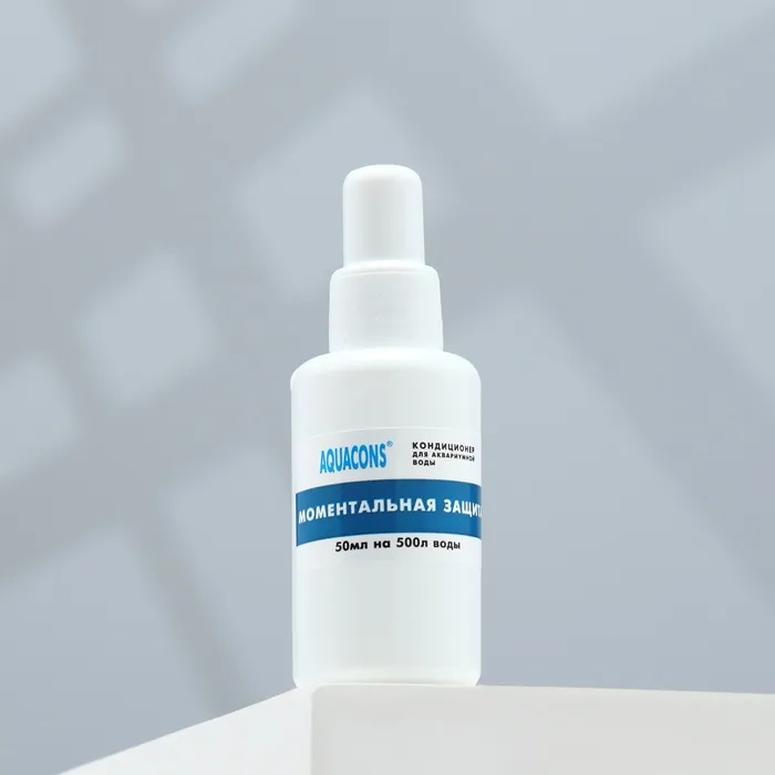 Кондиционер «Акваконс моментальная защита» для аквариумной воды 50 мл предназначен для нейтрализации аммиака, хлора, хлорамина и солей тяжелых металлов в морской и пресной аквариумной воде, что предотвращает отравление рыб, вызываемых этими вредными веществами. Также этот кондиционер способствует защите и восстановлению повреждений слизистой оболочки и жабр рыб, предупреждает и защищает рыб от различных стрессов, в том числе возникающих в процессе их транспортировки. Рекомендуется применять для карантинных аквариумов с новоприобретёнными рыбками. Способ применения: Определить наличие в аквариумной воде вредных веществ визуально по самочувствию рыб или с использованием специального тест-индикатора (не прилагаются). Кондиционер вносят в аквариум из расчёта 5 мл на каждые 50 л аквариумной воды. После внесения средства воду в аквариуме следует аккуратно перемешать. В рекомендуемом количестве кондиционер безопасен для рыб и аквариумных растений. Допускается пятикратное превышение указанной дозы в аквариумах без растений.