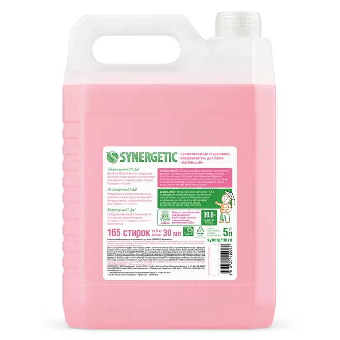 Биоразлагаемый кондиционер-ополаскиватель для белья SYNERGETIC "Аромамагия" – высокоэффективное средство, бережно ухаживающее за всеми типами ткани, в том числе деликатными, и придающее особую мягкость и нежность белью после стирки.