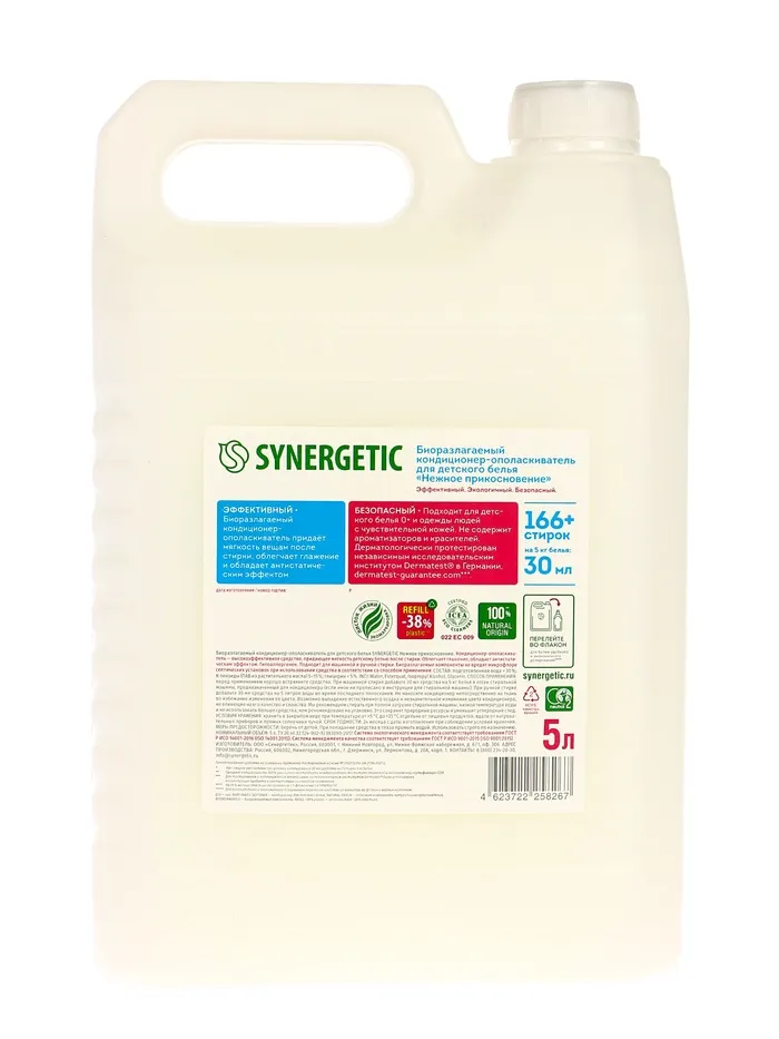 Гипоаллергенный кондиционер-ополаскиватель нейтрализует остатки средств для стирки на ткани, помогает сохранить структуру ткани, защищая волокна от изнашивания и повреждения. Средство обладает антистатическим эффектом. Комплекс растительных К-тензидов обеспечивает легкую глажку белья после стирки и высыхания.