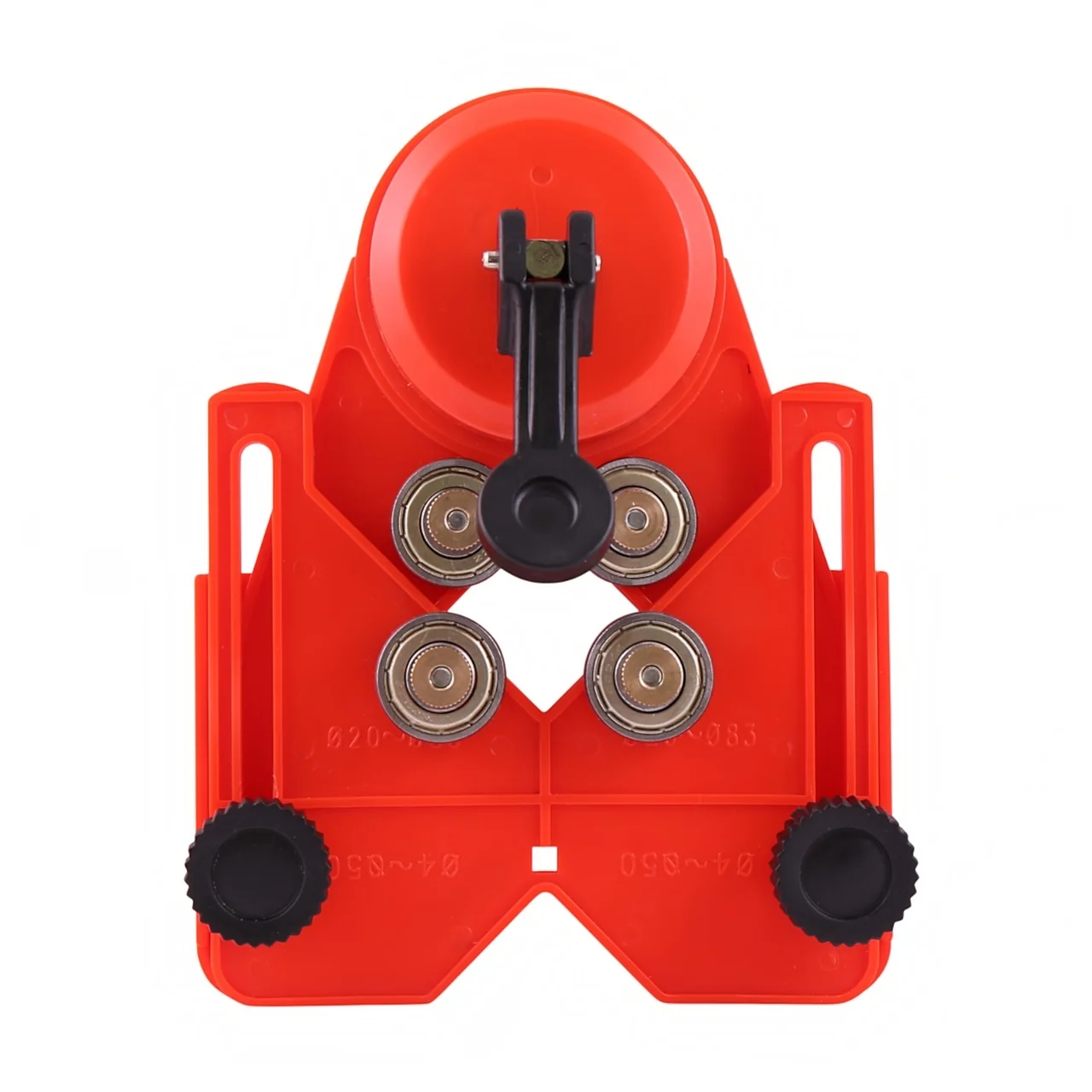 Этот инструмент выделяется легкостью и прочностью, что делает его идеальным выбором для профессионалов, занимающихся сверлением в условиях ограниченного пространства. Вакуумная присоска позволяет быстро и без дополнительных усилий фиксировать кондуктор на рабочей поверхности.