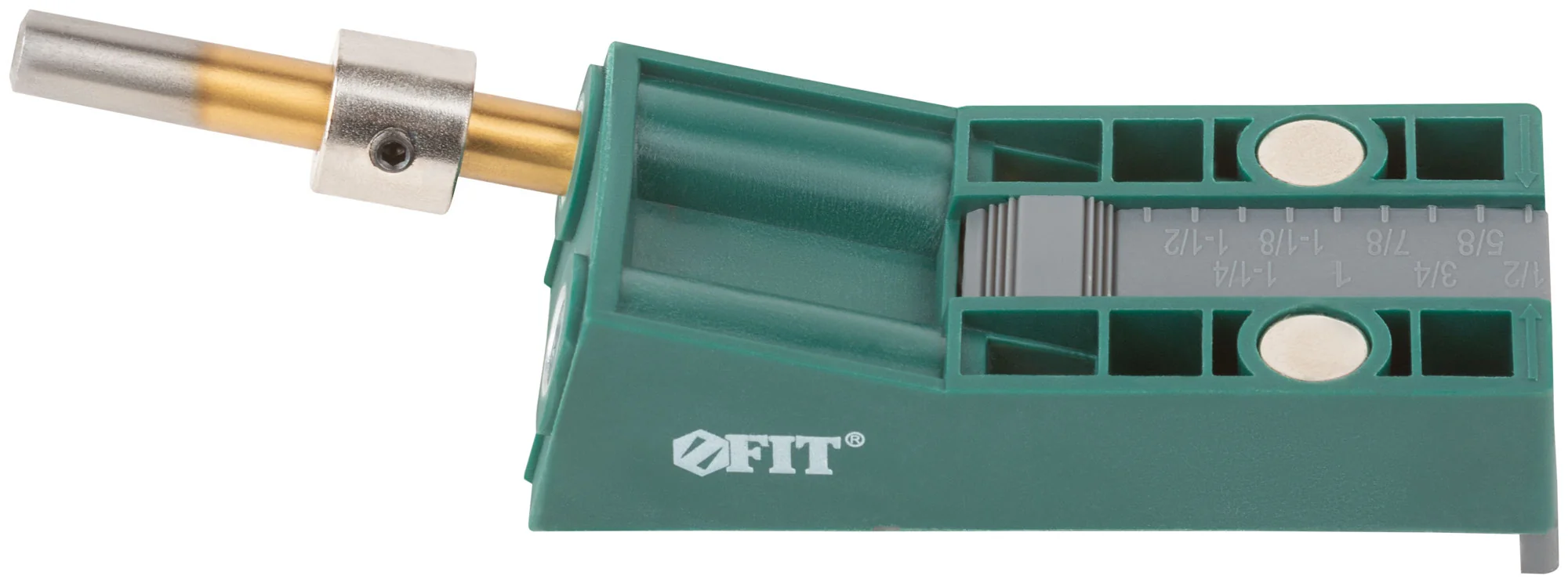 Идеальный инструмент для столяров и мебельщиков, кондуктор FIT позволяет сверлить глухие отверстия под углом 15°, что облегчает соединение деревянных деталей. Благодаря встроенным ферритовым магнитам и выдвижной линейке, он надежно фиксирует заготовку и обеспечивает точное позиционирование.
