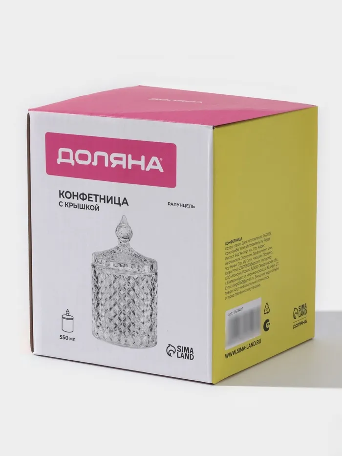 Конфетница Доляна «Рапунцель», 550 мл, 10.5×10.5×18 см, стекло, прозрачная — Характеристики