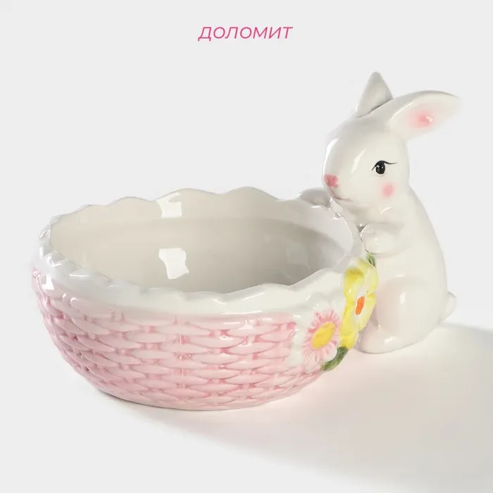 Конфетница Доляна «Зайка», 250 мл, доломит, розовая — Характеристики
