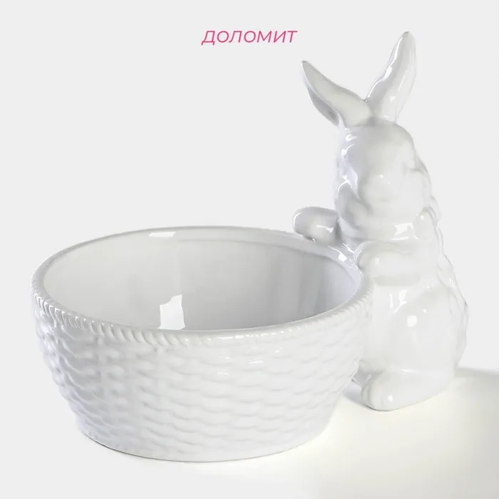 Конфетница Доляна «Зайка», 650 мл, 21.5×15.5×16.5 см, доломит, белая — Характеристики