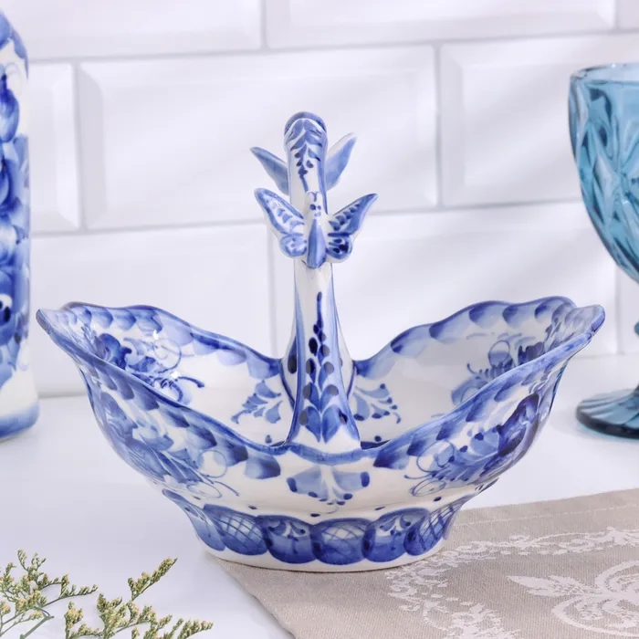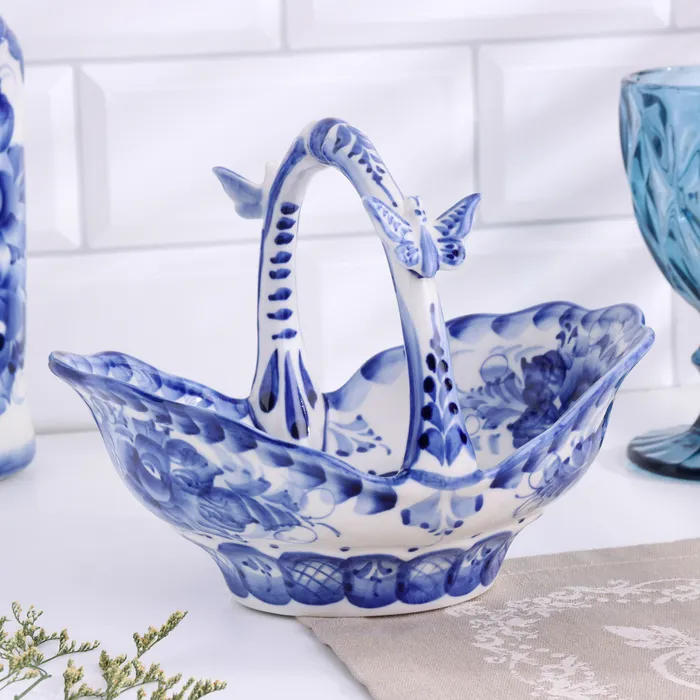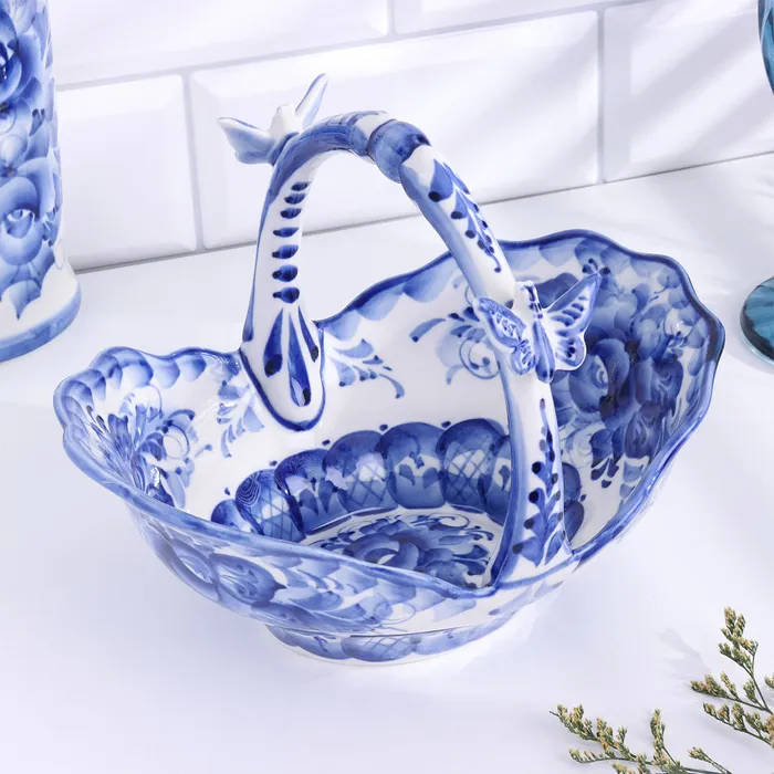 Конфетница гжель «Корзинка», бело-синий,керамика, — Характеристики