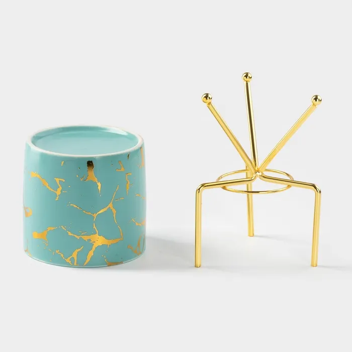 Конфетница на декоративных ножках пригодится на торжественном застолье и тихом семейном чаепитии. Ёмкость конфетницы выполнена из керамики, а металлическая ножки окрашены в тёплый золотистый цвет. Вазочку можно использовать не только для конфет, но и для мармелада, орехов, сухофруктов и других небольших закусок. Изделие станет оригинальным украшением праздничного стола. А если гостей соберется много, можно сервировать стол несколькими конфетницами - миниатюрная ёмкость для сладостей не займет много места.