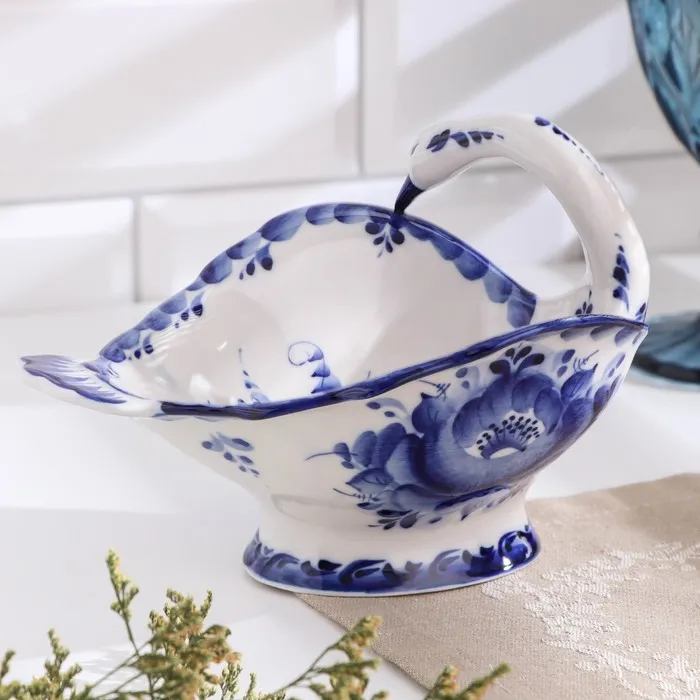 Конфетница «Лебедь», 18х15х12 см, гжель — Характеристики