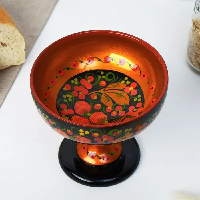 Конфетница на ножке, 14×14 см, дерево, хохлома — Характеристики