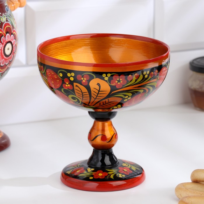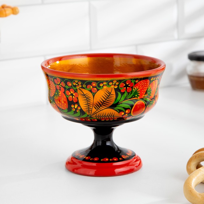 Конфетница на ножке «Сласть», 14.5×15 см, дерево, хохлома