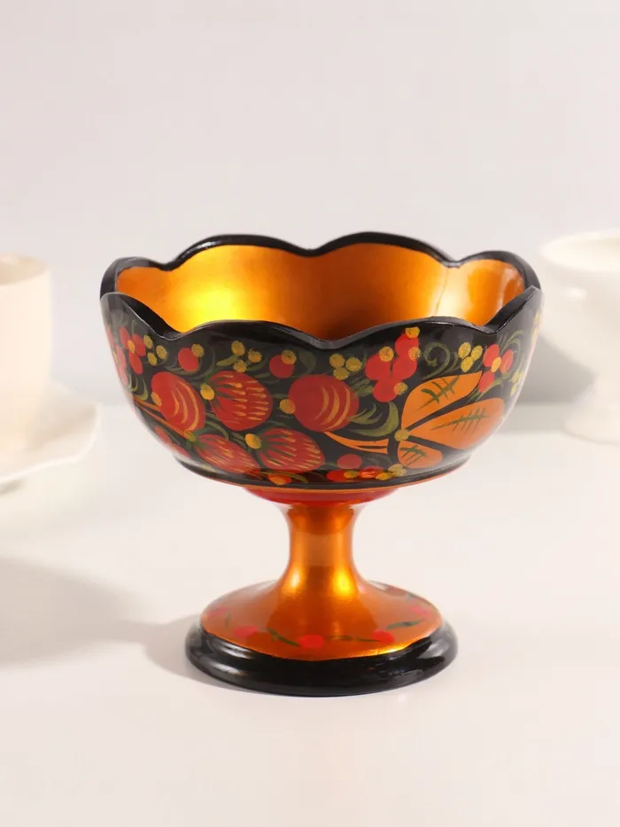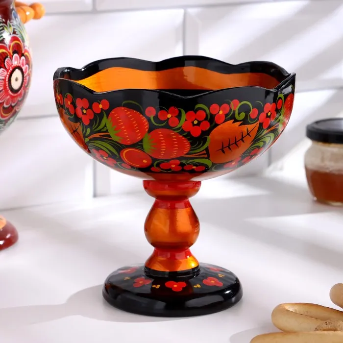 Конфетница на ножке «Земляничка», резная, дерево, хохлома — Характеристики