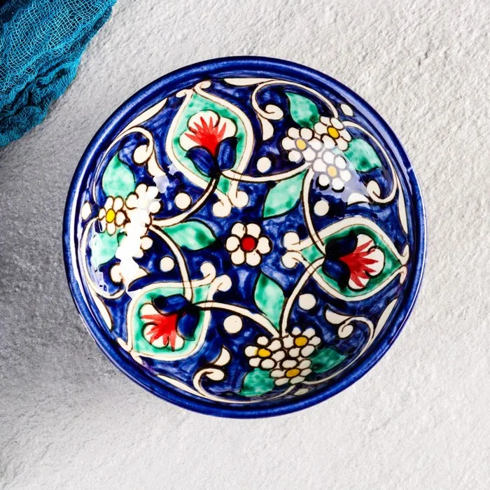 Конфетница Риштанская Керамика "Цветы", 12 см, синяя — Характеристики
