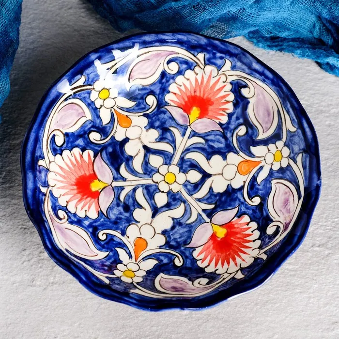 Конфетница Риштанская Керамика "Цветы", 14 см, синяя — Характеристики