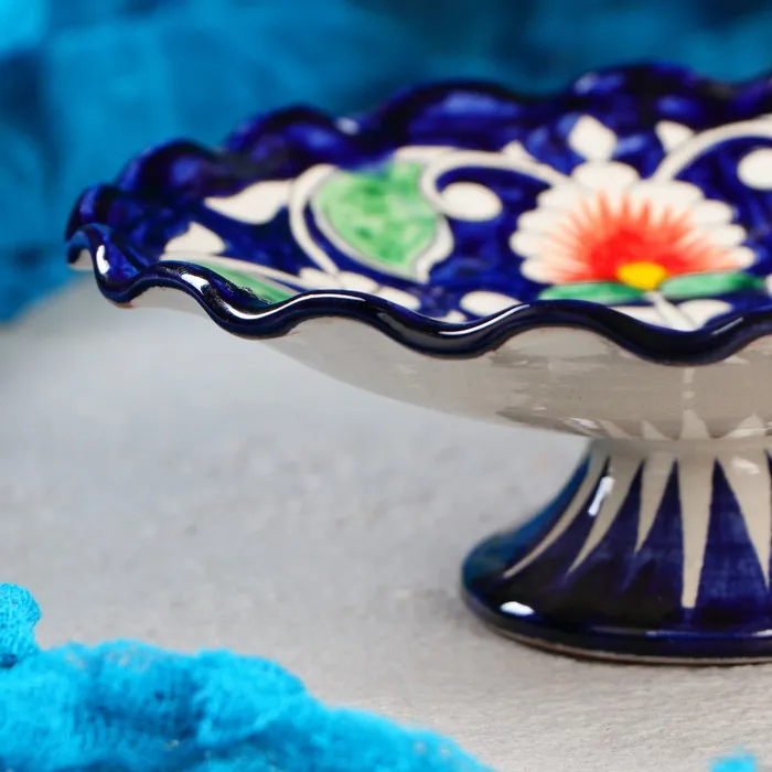 Конфетница Риштанская Керамика "Цветы", 14 см, синяя