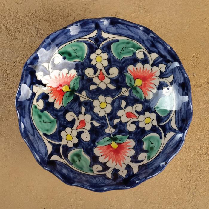 Конфетница Риштанская Керамика "Цветы", 16 см, синяя — Характеристики