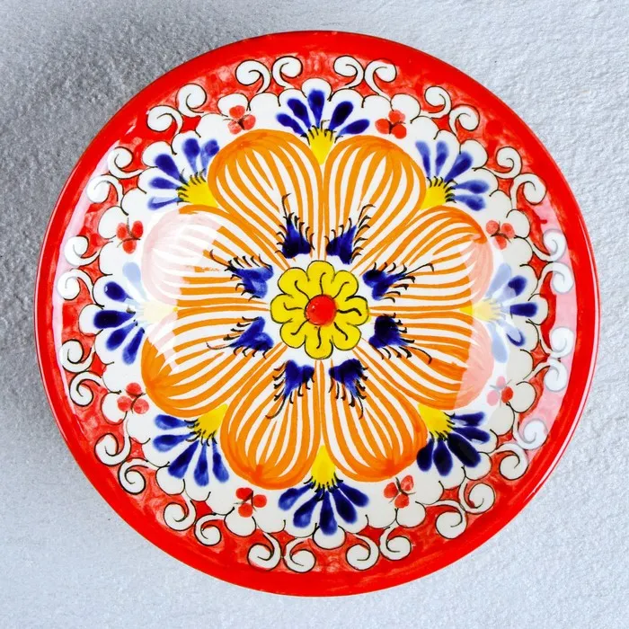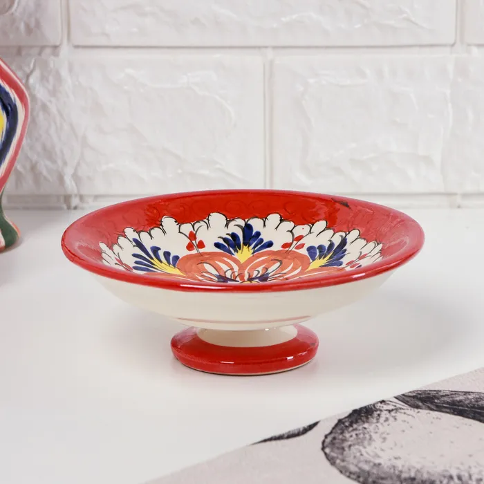 Конфетница Риштанская Керамика "Цветы", красная — Характеристики