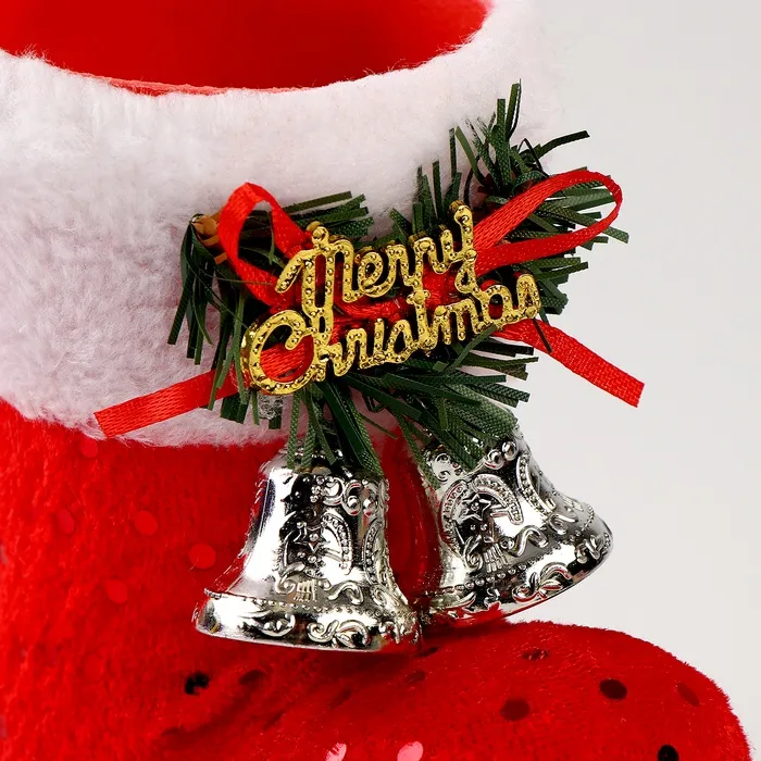 Конфетница «Сапожок» с колокольчиками станет отличным подарком на Новый год и ярким декором для праздничного стола или камина.