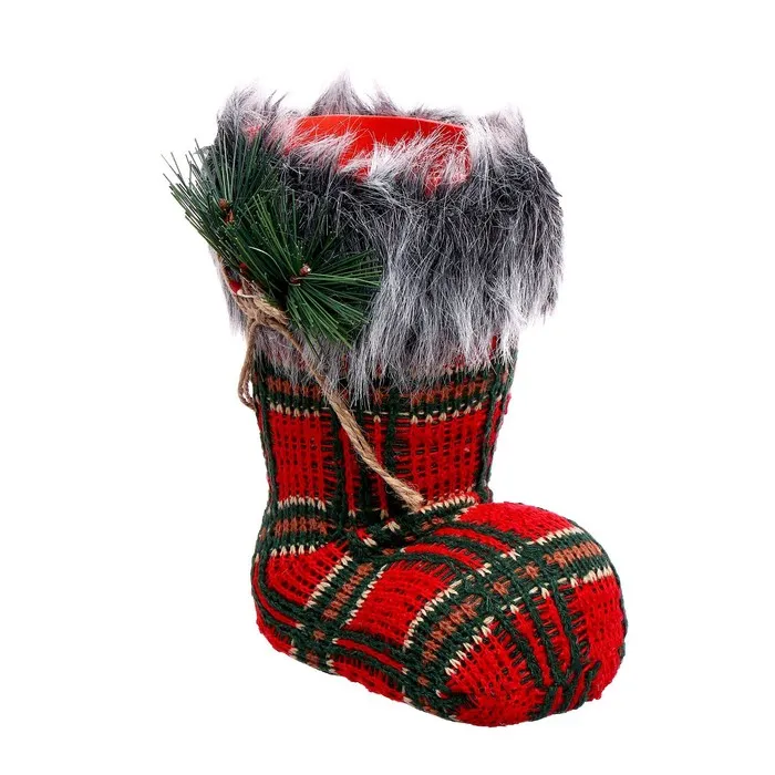 Конфетница «Сапожок» в клетку станет отличным подарком на Новый год и ярким декором для праздничного стола или камина.
