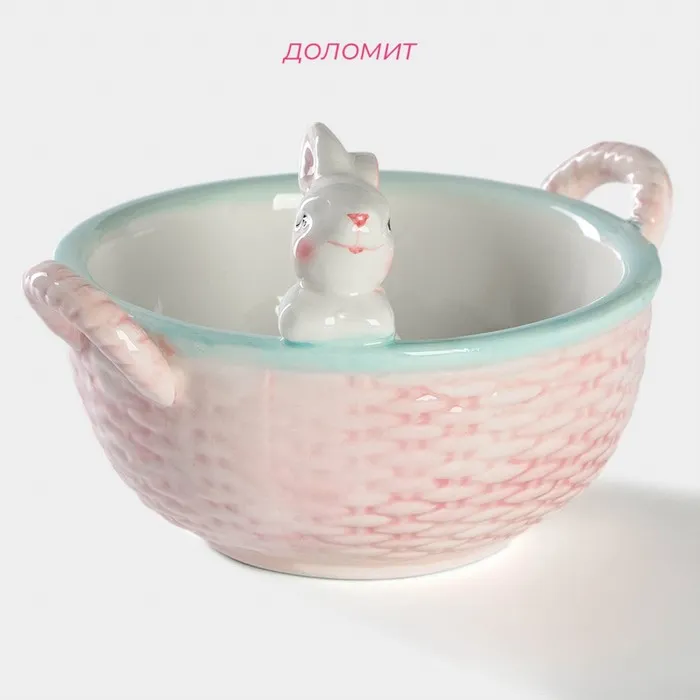 Конфетница «Зайка», 800 мл, 19.5×16.5×12.5 см, доломит, розовая — Характеристики