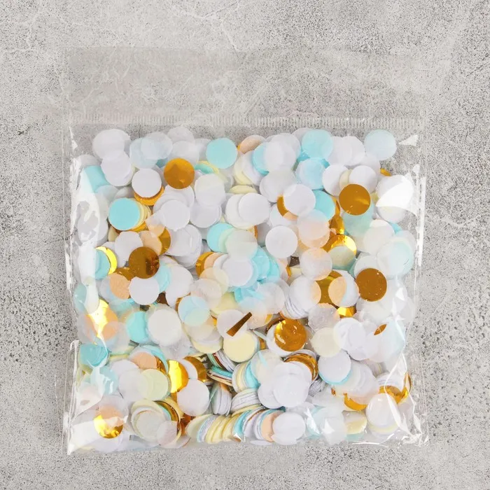 Конфетти создадут атмосферу карнавала! Красочные кружочки сделают ваше выступление или поздравление эффектным — наберите их в ладони и в ключевой момент подбросьте вверх. Они окутают всех вокруг разноцветным облачком. Компактный пакетик можно взять с собой куда угодно. С этим атрибутом легко произвести фурор на любой вечеринке или привнести нотку праздника в обычные дни.