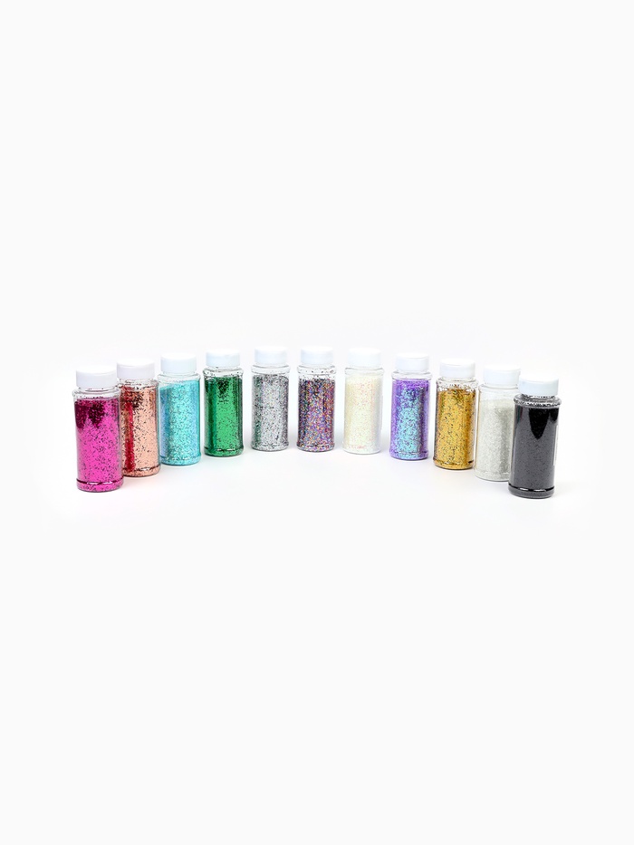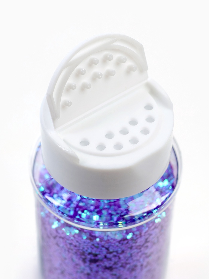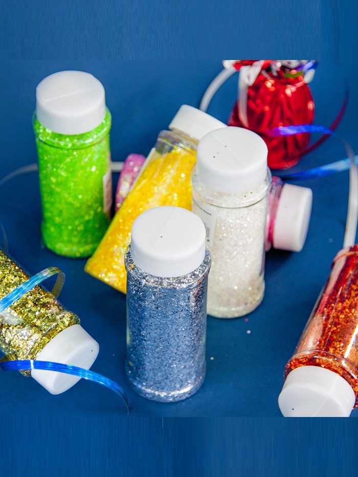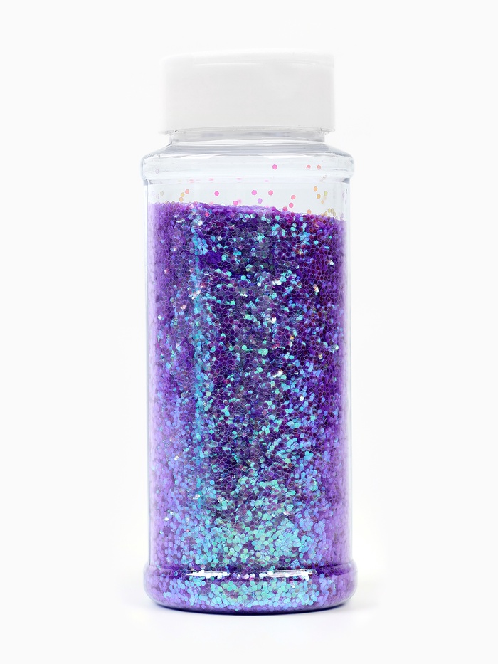 Благодаря высокой насыпной плотности, даже небольшое количество создаёт выразительный эффект. Для подарочной коробки достаточно 1–2 чайных ложек — так шестиугольники ложатся равномерно, не заслоняя другие элементы, но оставаясь заметными. В шарах лучше использовать в смеси с более крупными элементами: перламутр будет ”работать“ как фоновая текстура, а не как доминанта.