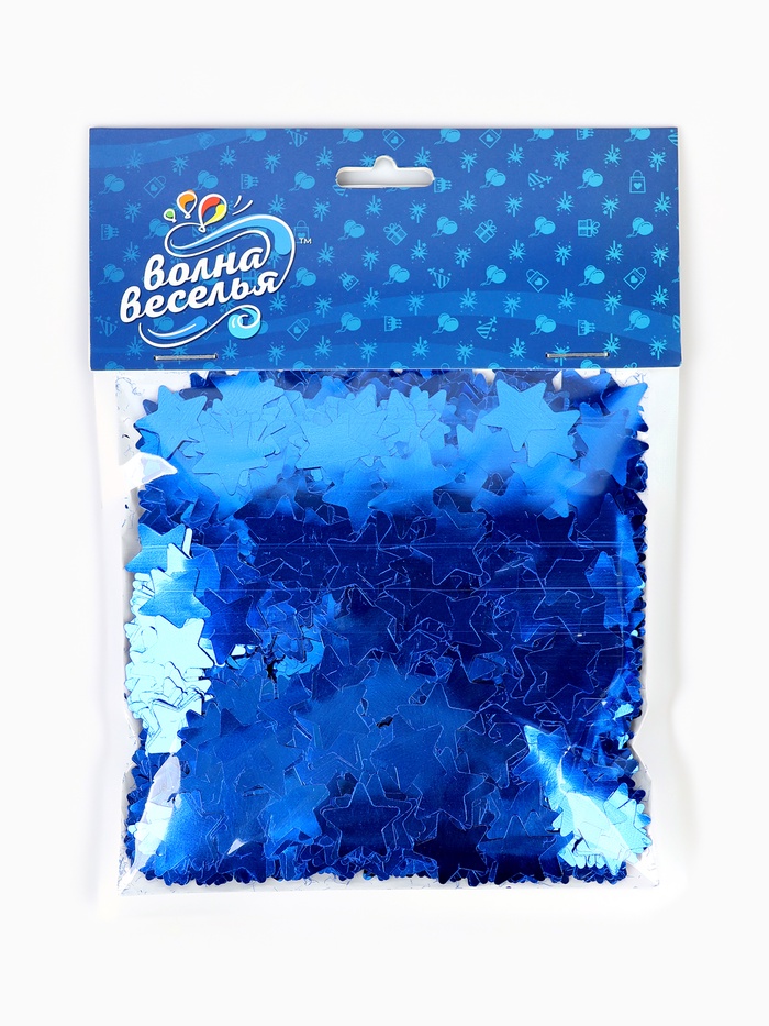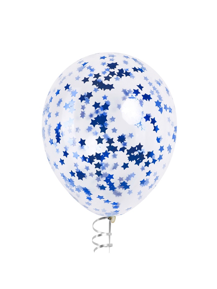 Синее металлическое звёздчатое конфетти — как ”рассыпанный ночной небосвод в миниатюре“. Его оттенок балансирует между глубиной морской волны и свежестью зимнего заката: сдержанный, но выразительный, спокойный, но не нейтральный. Такой наполнитель подчёркивает продуманность оформления — особенно в темах, где важна атмосфера: ”Космос“, ”Морская сказка“, ”Зимняя сказка без снега“, ”Мальчишник под звёздами“.