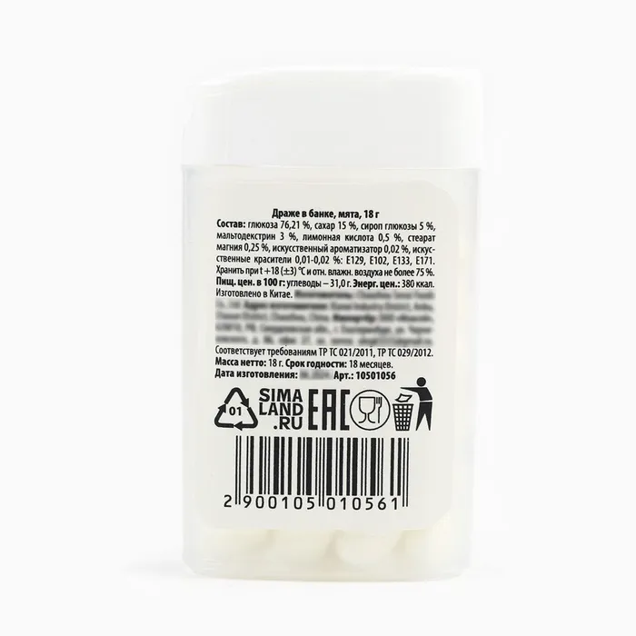 Конфеты драже в банке «Будем целоваться», мята, 18 г — Характеристики