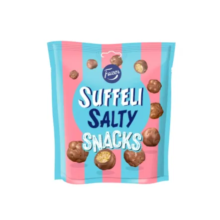 Suffeli Salty Snacks - веселые хрустящие сладости теперь имеют соленую начинку! За восхитительной шоколадной глазурью скрывается чудесно хрустящая соленая слойка из воздушной кукурузы. Побалуйте себя или поделитесь с друзьями.