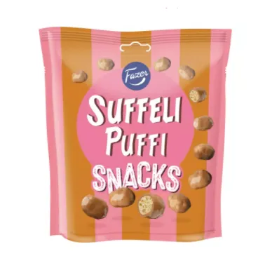 Suffeli Puffi Snacks - это забавные хрустящие шарики воздушной кукурузы, глазированные шоколадом. Теперь наслаждаться сладостями Suffeli Puffi Snacks в удобной упаковке стало просто. Побалуйте себя или поделитесь с друзьями!
