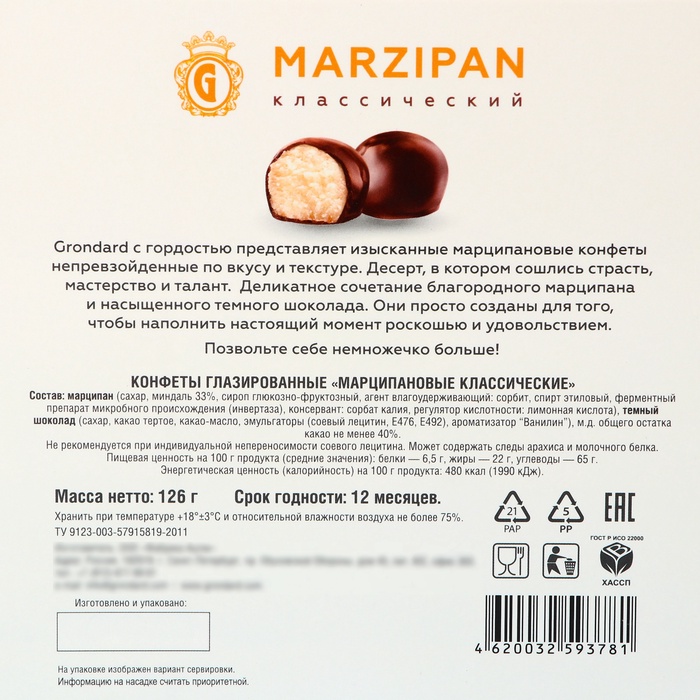 Марципановые конфеты - это не просто сладость, это настоящий волшебный подарок, который принесет радость и удовольствие в самые долгожданные моменты праздничного сезона. Классические нежные глазированные конфеты из марципана никого не оставят равнодушным, и непременно подарят своему счастливому обладателю неповторимое наслаждение.