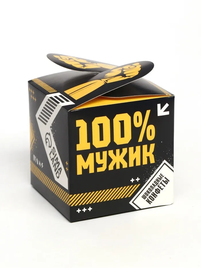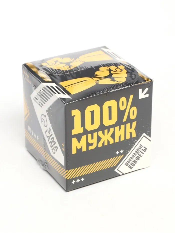 Конфеты подарочные шоколадные «100% мужик» в коробке с лентой, 150 г — Характеристики