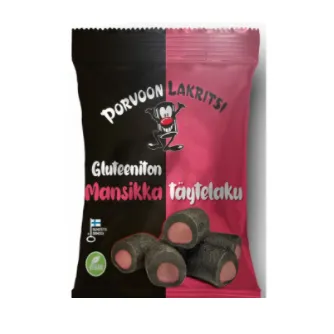 Конфеты Porvoon Lakritsi - безглютеновые жевательные конфеты из лакрицы со вкусом клубники.