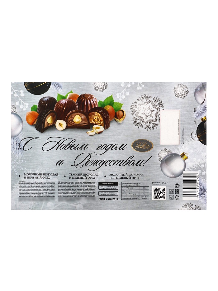 Новогоднее настроение в каждой конфете! Ассорти шоколадных конфет с лесным орехом — это праздничное угощение для зимних праздников. Картонная упаковка с тематическим оформлением создает атмосферу волшебства.