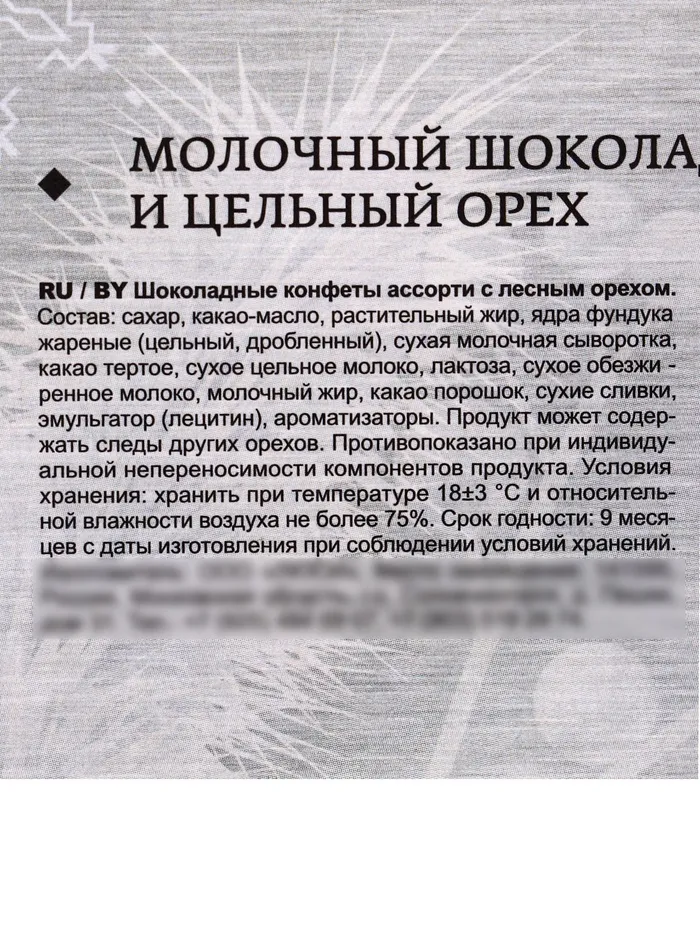 - Разнообразие форм и начинок: Ассорти включает несколько видов конфет — с цельным орехом, пралине, грильяжем.