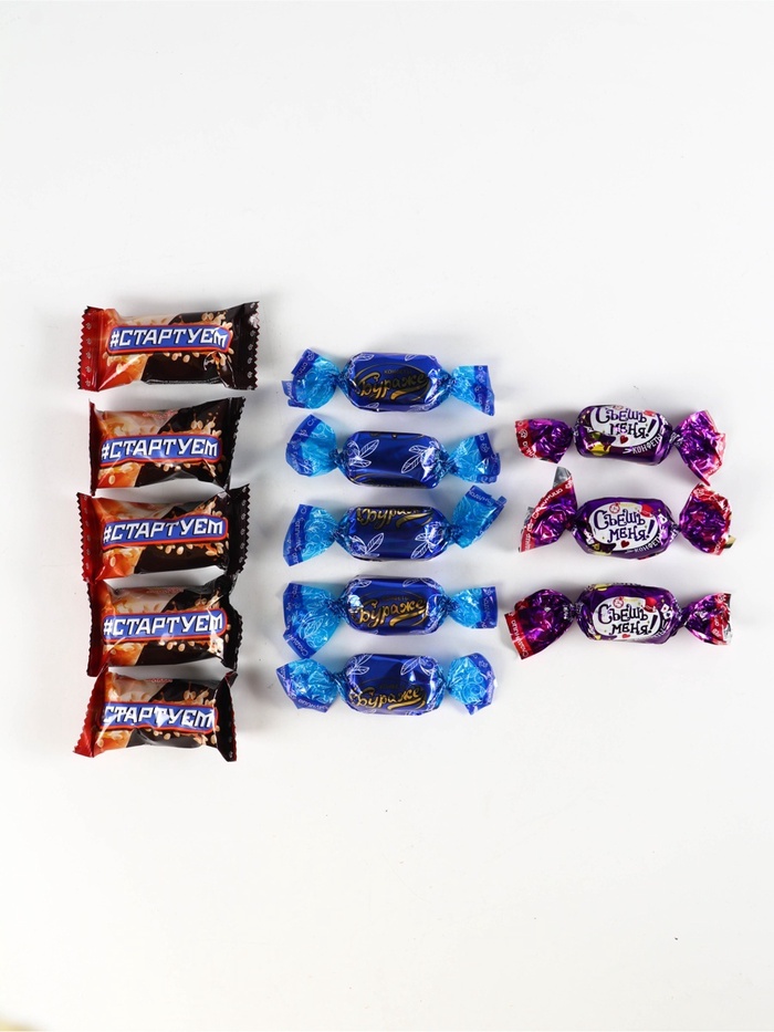 Конфеты глазированные комбинированные с корпусами из мягкой карамели с начинкой типа пралине «Стартуем»