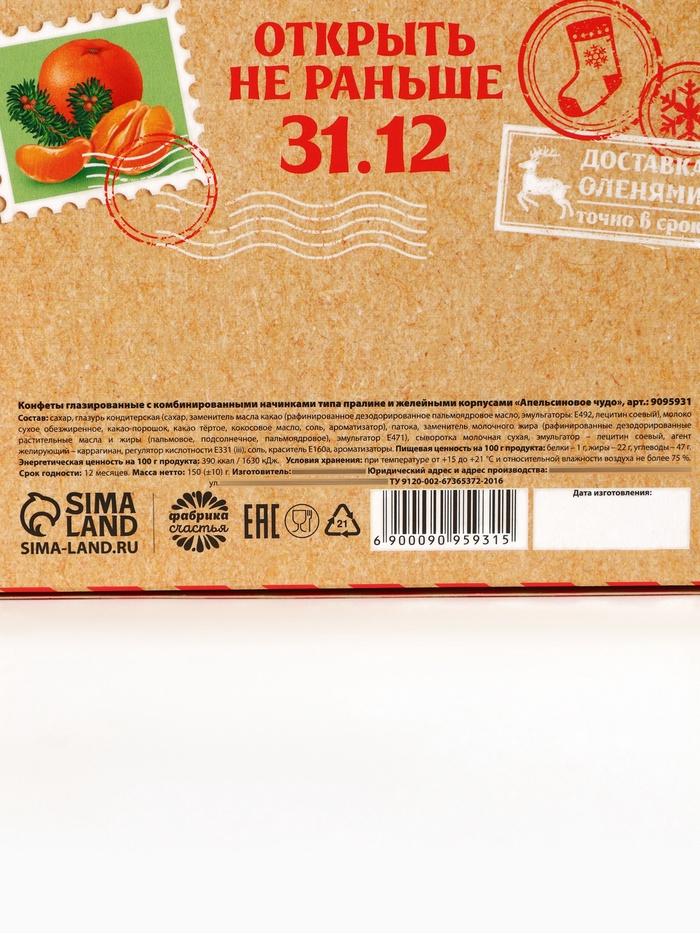 Состав: сахар, глазурь кондитерская (сахар, заменитель масла какао (рафинированное дезодорированное пальмоядровое масло, эмульгаторы: Е492, лецитин соевый), молоко сухое обезжиренное, какао-порошок, какао тёртое, кокосовое масло, соль, ароматизатор), патока, заменитель молочного жира (рафинированные дезодорированные растительные масла и жиры (пальмовое, подсолнечное, пальмоядровое), эмульгатор Е471), сыворотка молочная сухая, эмульгатор – лецитин соевый, агент желирующий – каррагинан, регулятор кислотности Е331 (iii), соль, краситель Е160а, ароматизаторы.