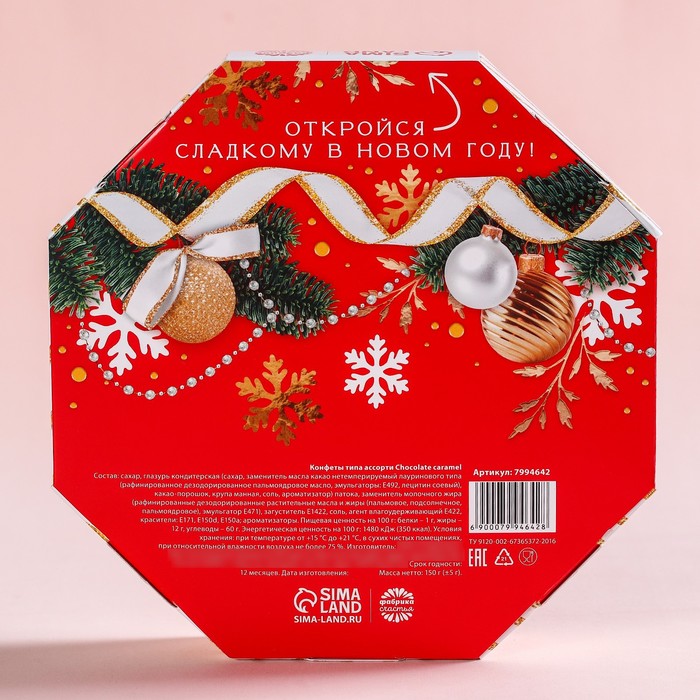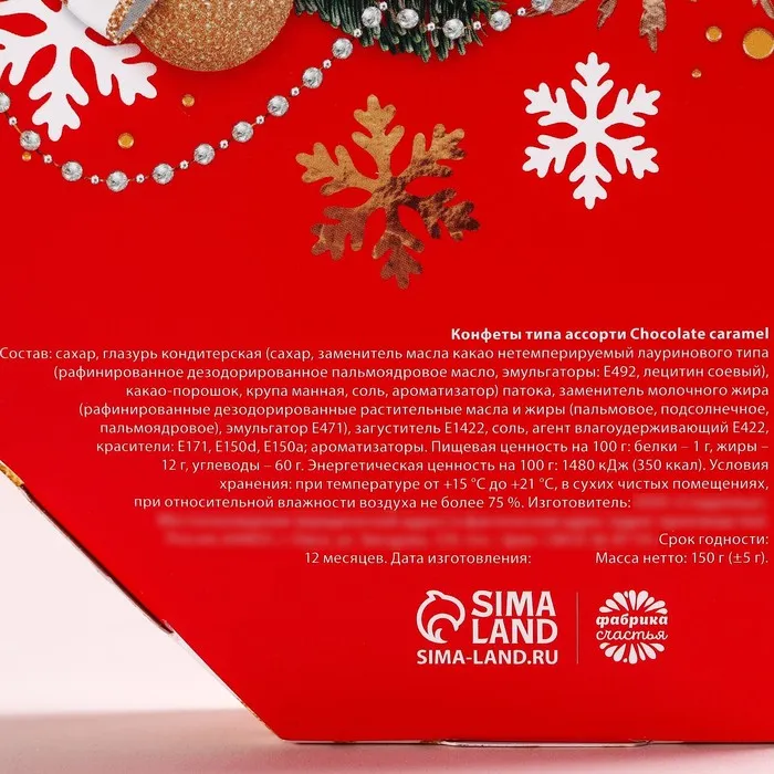 Состав: сахар, глазурь кондитерская (сахар, заменитель масла какао нетемперируемый лауринового типа (рафинированное дезодорированное пальмоядровое масло, эмульгаторы: Е492, лецитин соевый), какао-порошок, крупа манная, соль, ароматизатор) патока, заменитель молочного жира (рафинированные дезодорированные растительные масла и жиры (пальмовое, подсолнечное, пальмоядровое), эмульгатор Е471), загуститель Е1422, соль, агент влагоудерживающий Е422, красители: Е171, Е150d, Е150а; ароматизаторы.