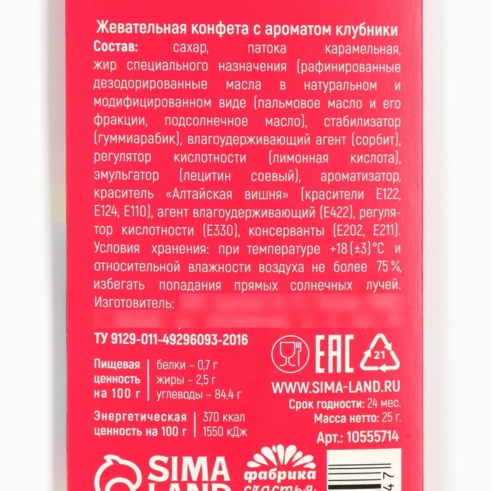 Конфеты жевательные «Полный кислец», 1 шт х 25 г — Характеристики