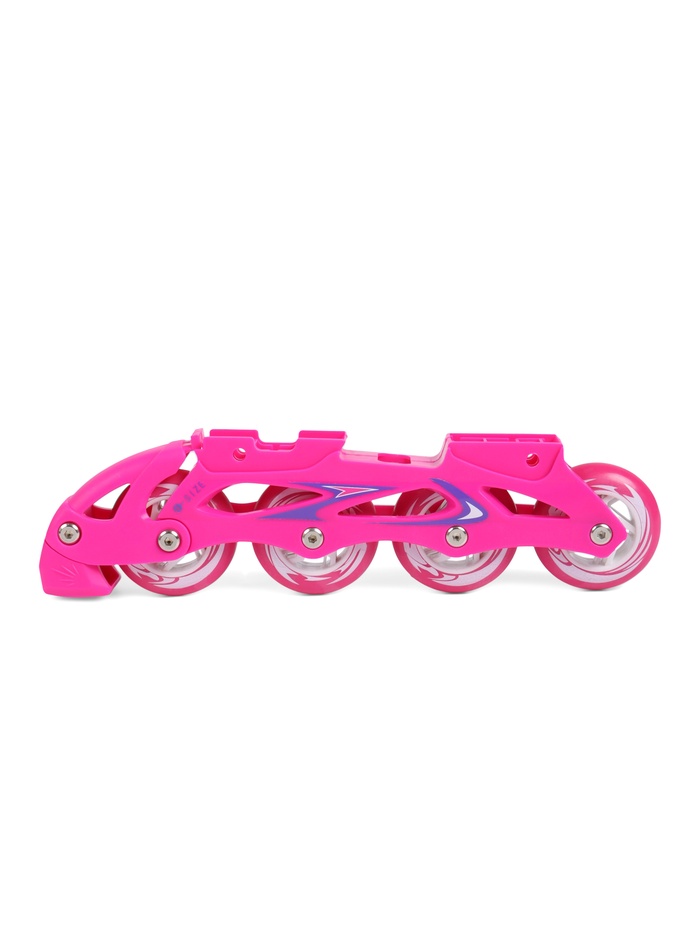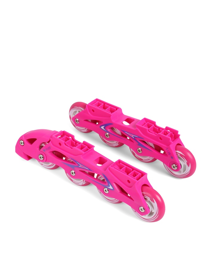 - Роликовая платформа в комплекте – прочная полимерная рама с мягкими и тихими PU-колёсами и подшипниками ABEC-5 позволяет использовать коньки как ролики, превращая одну пару обуви в два полноценных спортивных варианта.