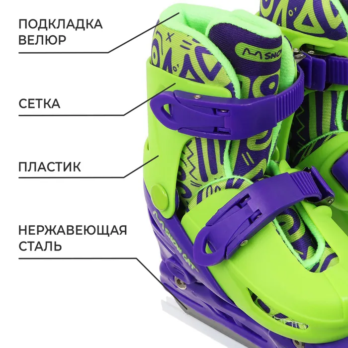 Коньки подходят для катания на открытом льду и крытых катках. Их легко надеть, отрегулировать и зафиксировать с помощью пластиковых клипс, которые расположены на голенище и в области ступни.