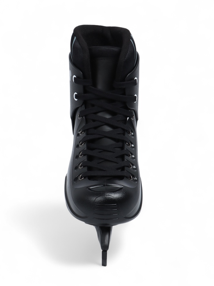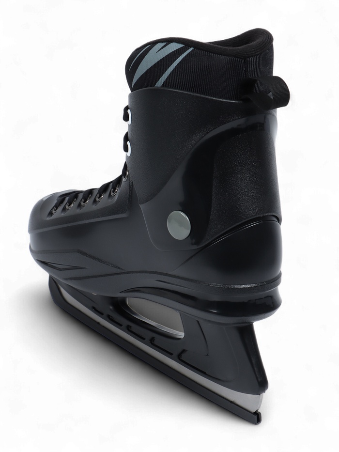 - Основа ботинка: пластик. Жёсткий материал создаёт надёжную защиту от попадания шайбы. Пластиковый носок обеспечивает стойкость изделия к порезам и истиранию.