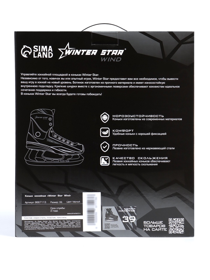 Коньки хоккейные прокатные Winter Star, р. 39 — Характеристики