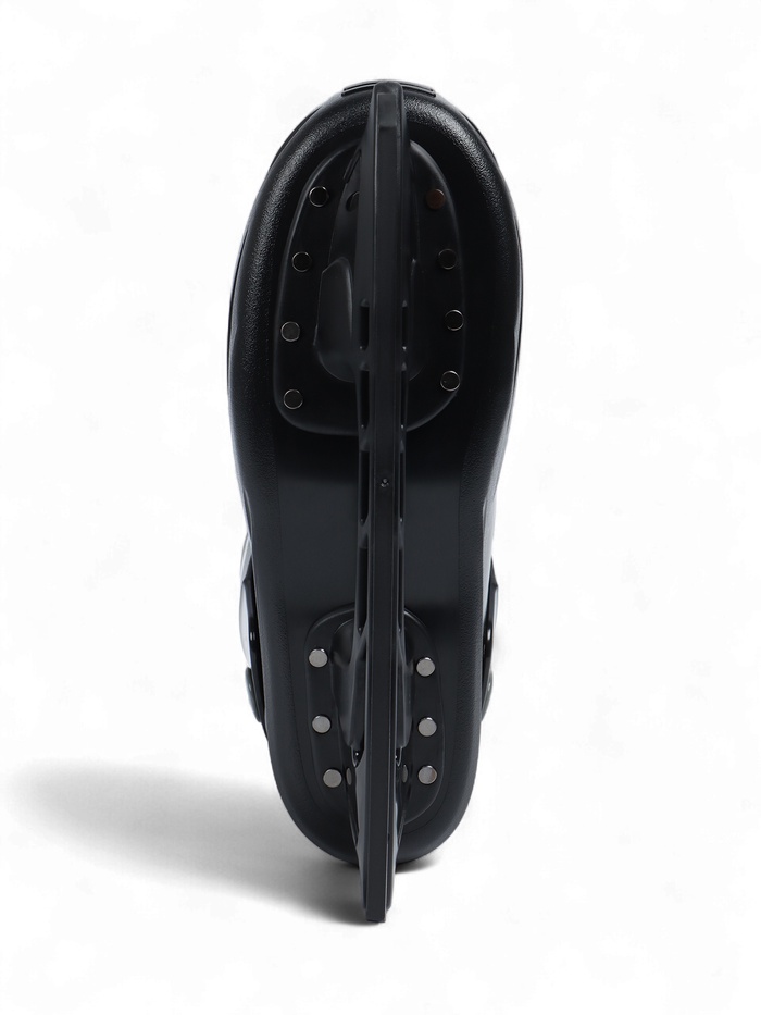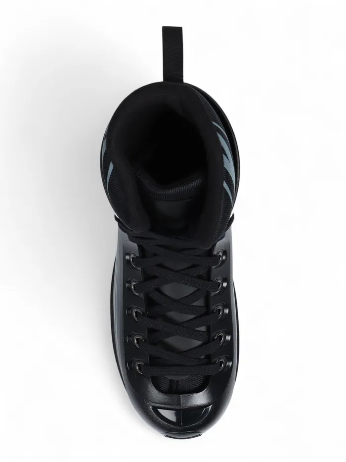 - Основа ботинка: пластик. Жёсткий материал создаёт надёжную защиту от попадания шайбы. Пластиковый носок обеспечивает стойкость изделия к порезам и истиранию.
