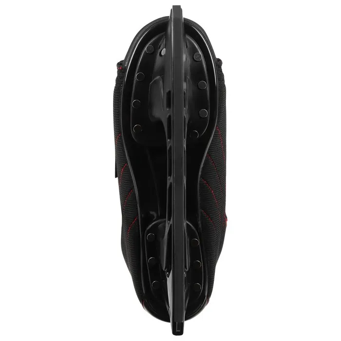 - Основа ботинка: пластик. Жёсткий материал создаёт надёжную защиту от попадания шайбы. Пластиковый носок обеспечивает стойкость изделия к порезам и истиранию.