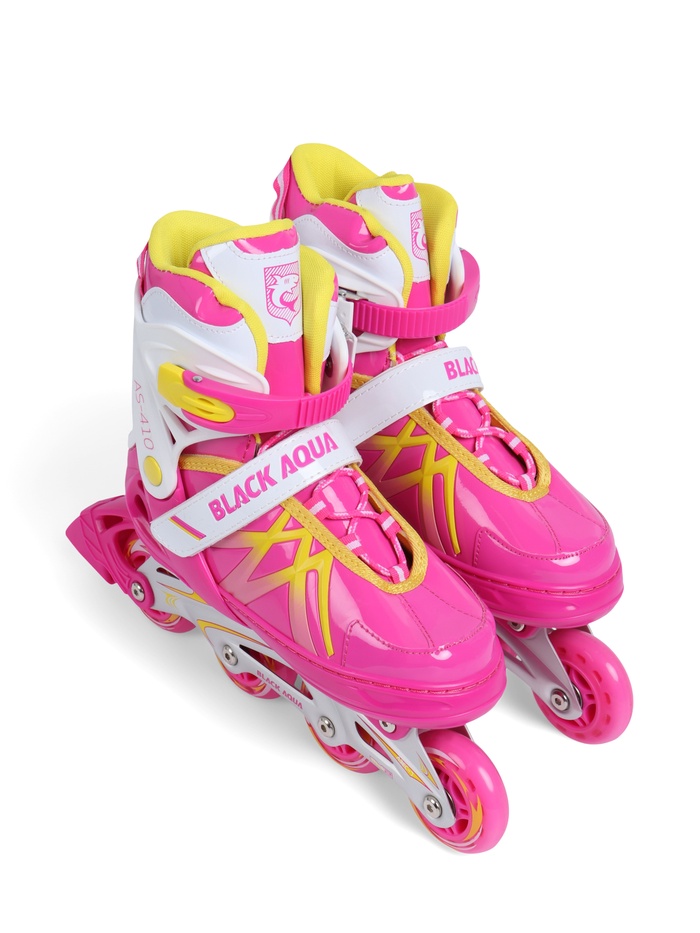 Коньки раздвижные BlackAqua, р. 39-42, для фитнеса, с роликовой платформой, цвет фуксия — Характеристики