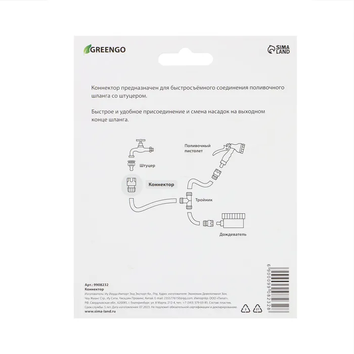 Коннектор предназначен для соединения шланга с пистолетами-разбрызгивателями и распылительными насадками. С ним вы сможете с легкостью менять насадки по необходимости.
